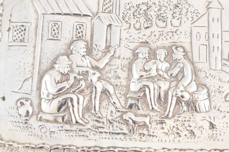 Leírás: Ezüst(Ag) kétfüles, virágos antik tálka mulatozó társaság jelenettel, jelzett, 20×12,7 cm, nettó: 112 g