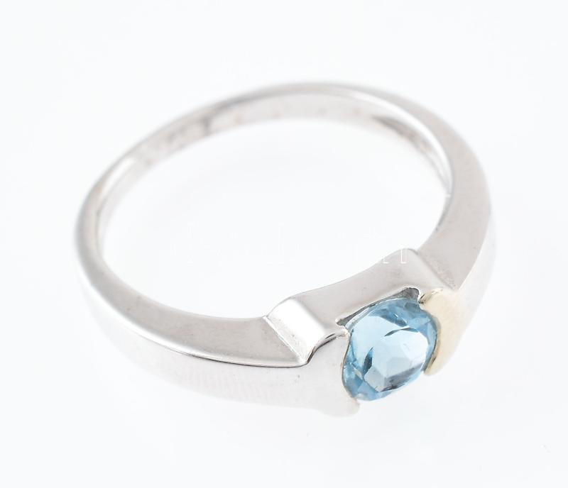 Leírás: Fehérarany (Au) 14K akvamarin köves gyűrű, jelzett, méret: 57, bruttó: 3,9 g