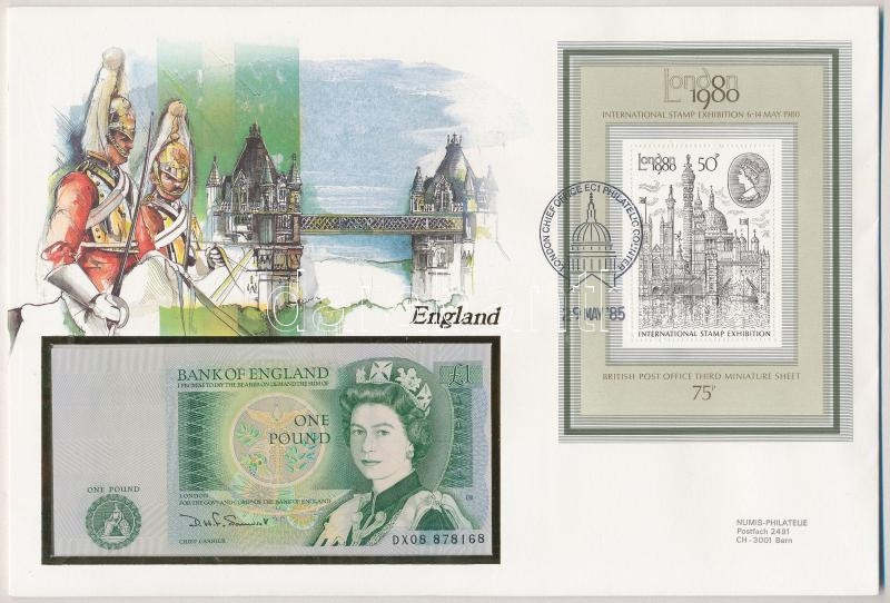 Nagy-Britannia / Anglia 1981-1984. 1P felbélyegzett borítékban, bélyegzéssel T:I Great Britain / England 1981-1984. 1 Pound in envelope with stamp and cancellation C:UNC