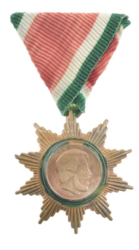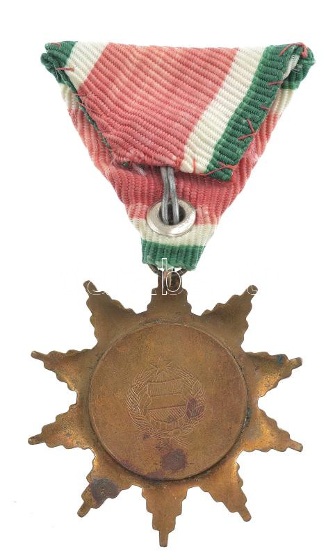 1957. "A Magyar Szabadság Érdemrend bronz fokozata" aranyozott bronz kitüntetés mellszalagon, hiányos medallion! T:2 patina Hungary 1957. "Order of Merit of the Hungarian Freedom, Bronze Grade" gilt bronze decoration with ribbon, incomplete medallion! C:XF patina NMK 485.