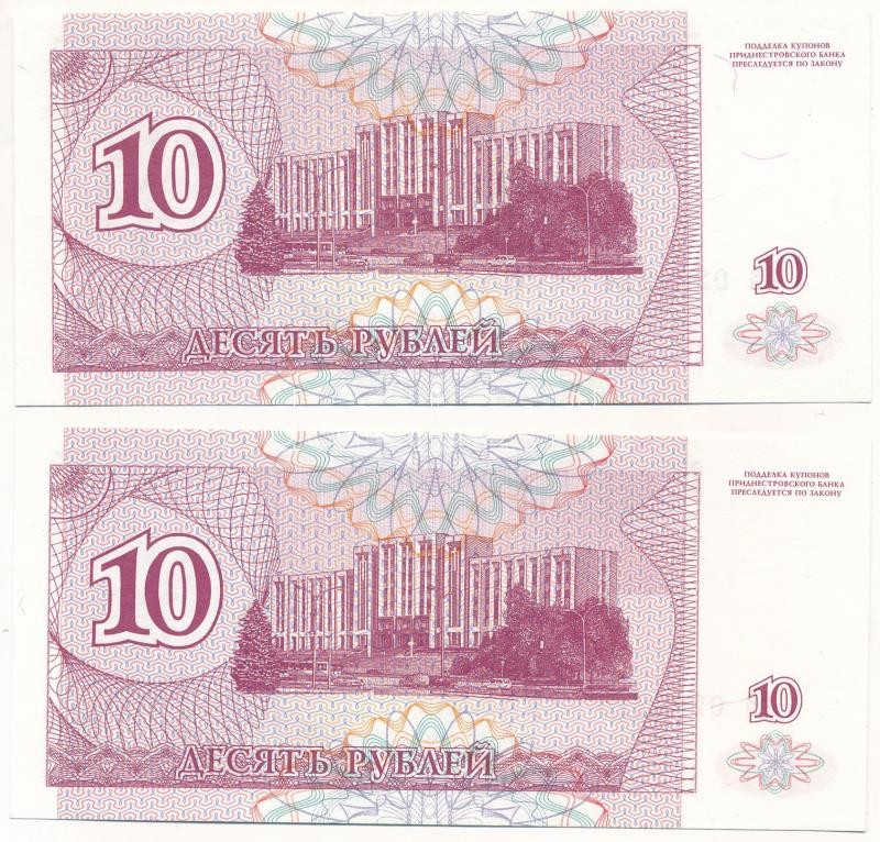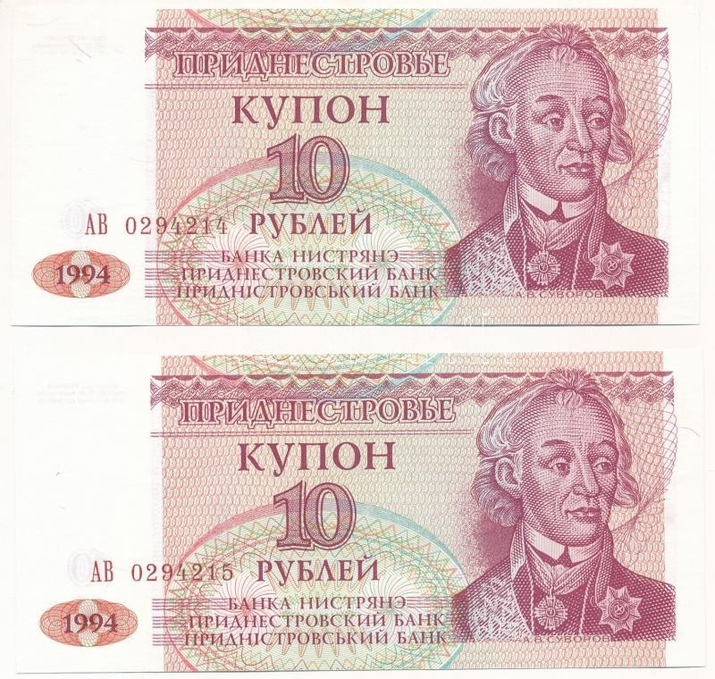 Transnistria 1994. 1 Ruble (2x) consecutive serials + 1994. 5 Rubles (2x) consecutive serials + 1994. 10 Rubles (2x) consecutive serials + C:UNC