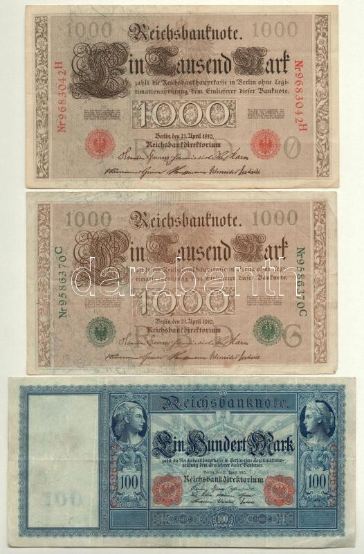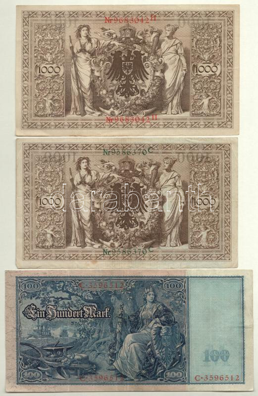 Német Birodalom 1908. 100M + 1910. 100M + 1910. 1000M (2xklf) + 1922. ... https://www.darabanth.com/hu/431-Gyorsarveres/431.0/Numizmatika/Kulfoldi-bankjegyek~1500015/Nemet-Birodalom-1908-100M-plus-1910-100M-plus-1910-1000M-2xklf-plus-1922-1000M-plus-1923-100000M-szuks~II2767859