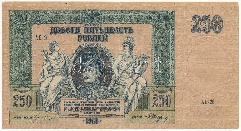Russian Civil War / South Russia / Army of Denikin and Wrangel 1918. 250 Rubles "AE-26" C:F