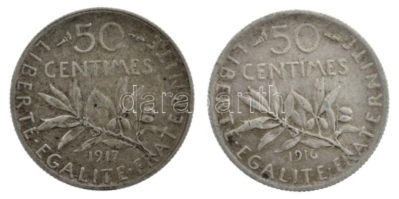 Leírás: Franciaország 1916-1917. 50c Ag (2xklf) T:2,2- patina France 1916-1917. 50 Centimes Ag (2xdiff) C:XF,VF patina