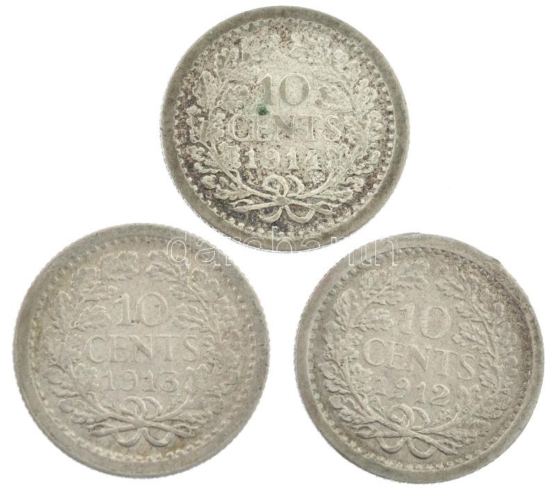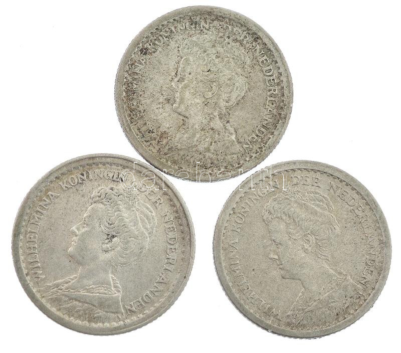 Leírás: Hollandia 1912-1914. 10c Ag "Vilma" (3xklf) T:2- patina