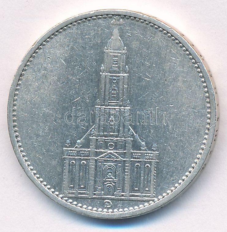 Német Harmadik Birodalom 1935D 5M Ag "Náci hatalom első évfordulója / Potsdami Garrison templom" T:2-