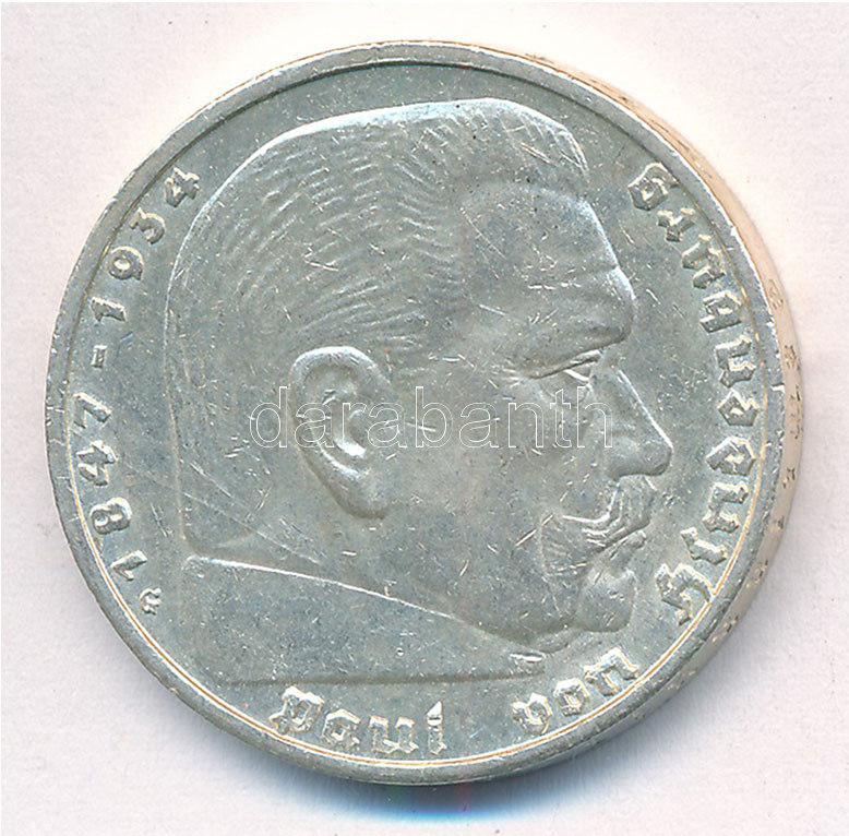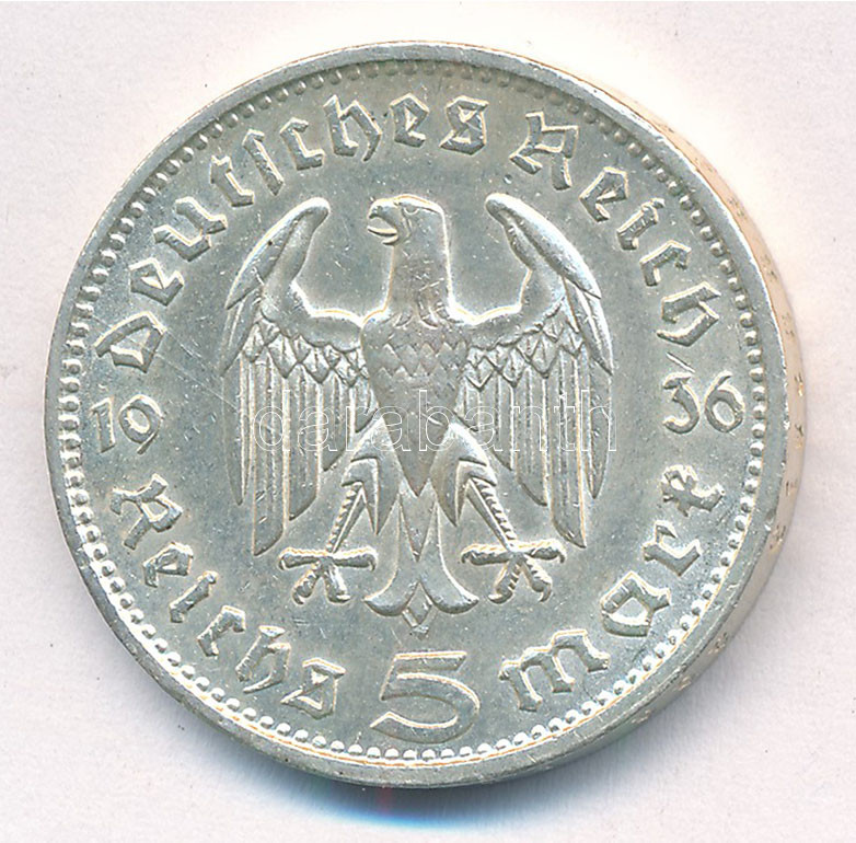 Ger... https://www.darabanth.com/hu/431-Gyorsarveres/431.0/Numizmatika/Kulfoldi-fem-es-ezustpenzek~1500016/Nemet-Harmadik-Birodalom-1936G-5M-Ag-Hindenburg-T1--German-Third-Reich-1936G-5-Mark-Ag-Hinden~II2769444