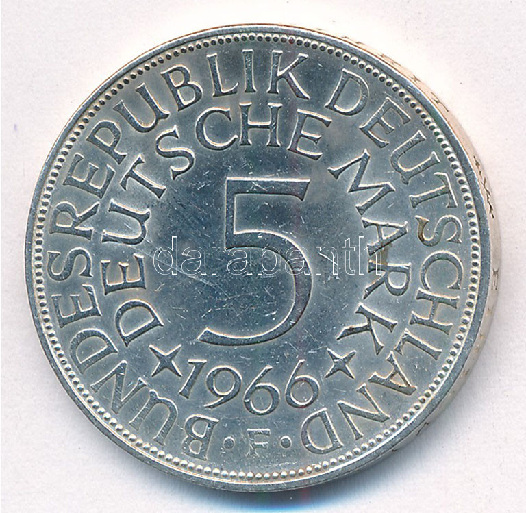 Federal Republic Germany... https://www.darabanth.com/hu/431-Gyorsarveres/431.0/Numizmatika/Kulfoldi-fem-es-ezustpenzek~1500016/Nemet-Szovetsegi-Koztarsasag-1966F-5M-Ag-T2-Federal-Republic-Germany-1966F-5-Mark-Ag-CXF--~II2771063