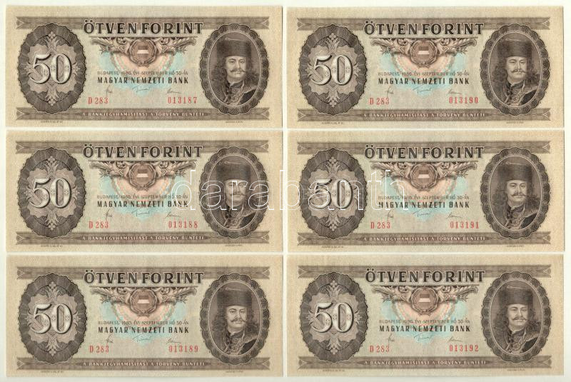 Leírás: 1980. 50Ft (6x) sorszámkövetők "D 283 013187 - D 283 013192" T:I Adamo F22