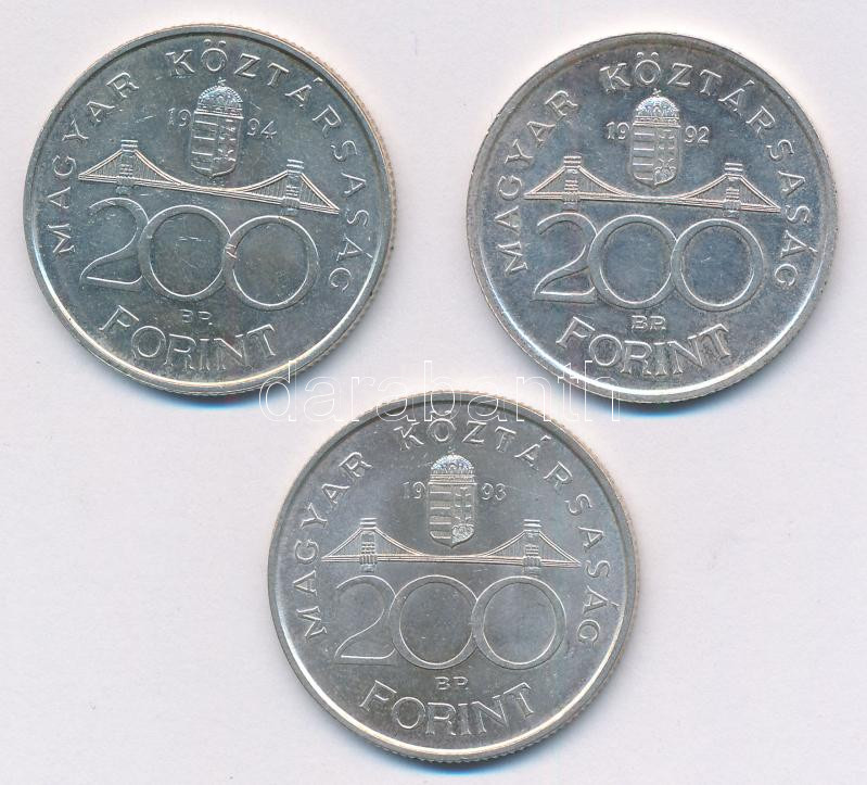 Leírás: 1992. 200Ft Ag "MNB" + 1993. 200Ft Ag "MNB" + 1994. 200Ft Ag "Deák" T:1-