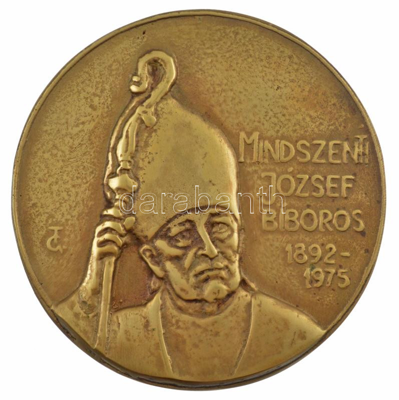 Leírás: Tőrös Gábor (1934-2021) DN "Mindszenty József bíboros 1892-1975" bronz emlékérem (130mm) T:1- felül peremén lyukasztott.