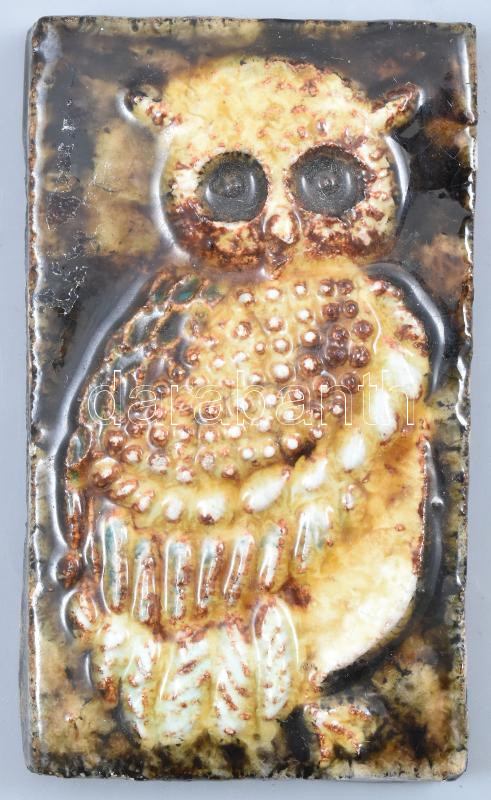 Leírás: RM jelzéssel: Bagoly. Fali kerámia, kis lepattanással, 13x7,5cm