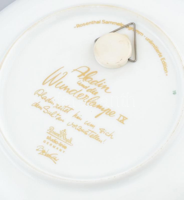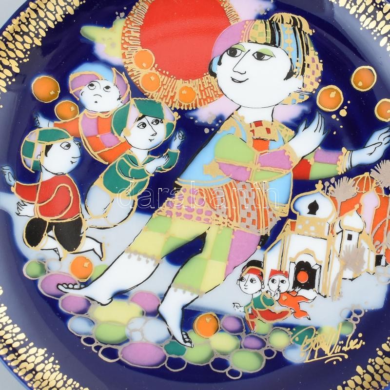 Bjorn Wiinblad: Aladdin és a csodalámpa, Rosenthal studio-linie kézzel festett porcelán. Németország, 1970 körül. d: 16 cm. Hibátlan.