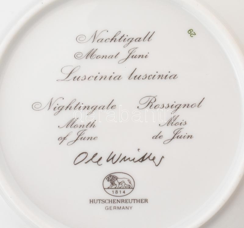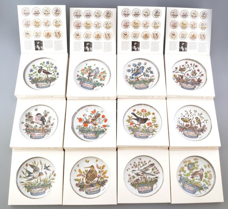 Leírás: Hutschenreuther porcelán dísztányér, 12 db, Ole Winther terve, madarak, matricás, jelzett, eredeti dobozban, hibátlan , d: 16 cm