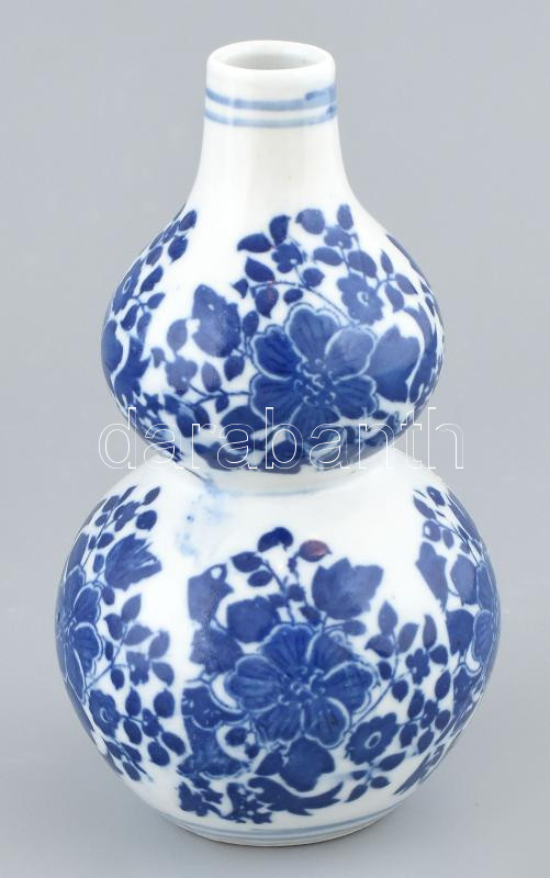 Leírás: Kínai váza, porcelán, mázalatti kobaltkék virágdíszítménnyel, jelzett, hibátlan, m: 18 cm