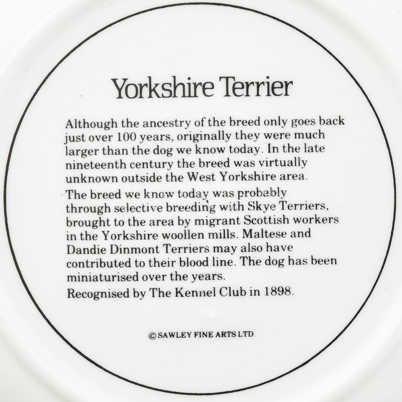 Leírás: Yorkshire Terrier mintás porcelán tányér, jelzett, hibátlan, d: 17 cm