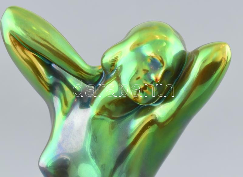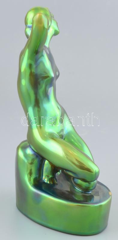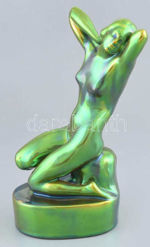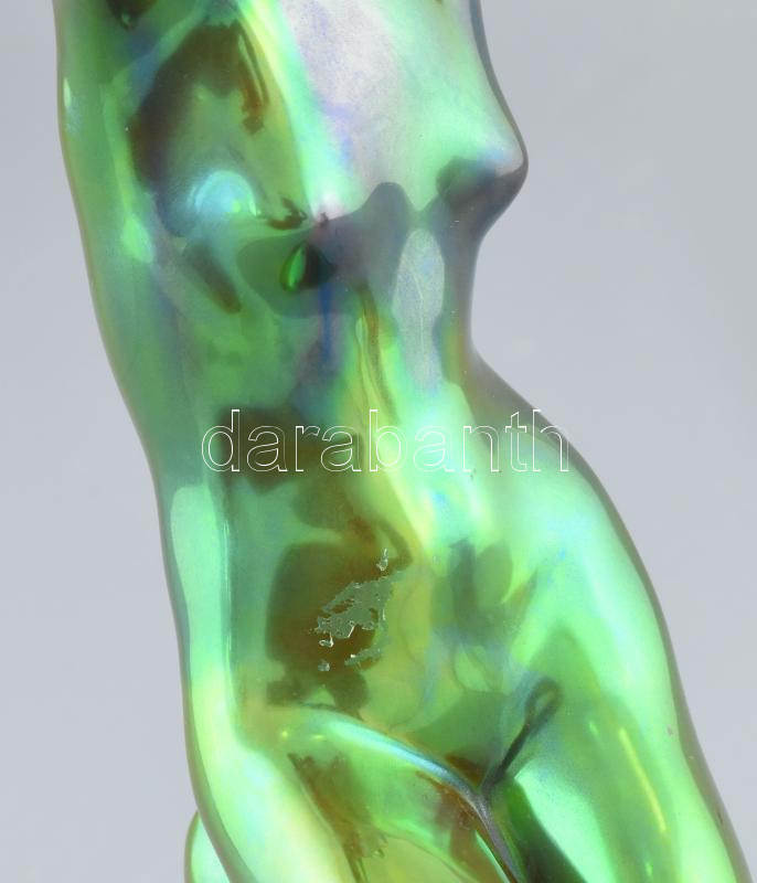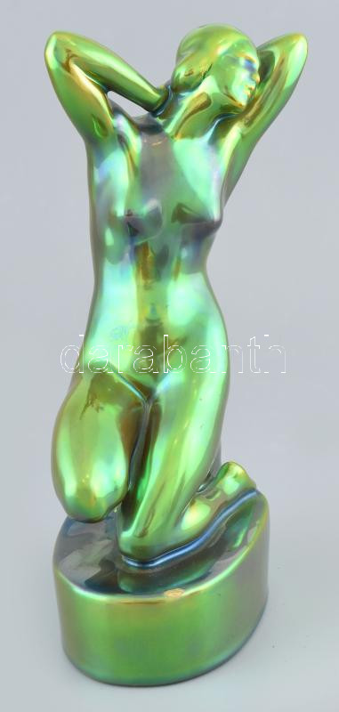 Leírás: Zsolnay eozin mázas akt szobor, jelzett, kis lepattanással, m: 25cm