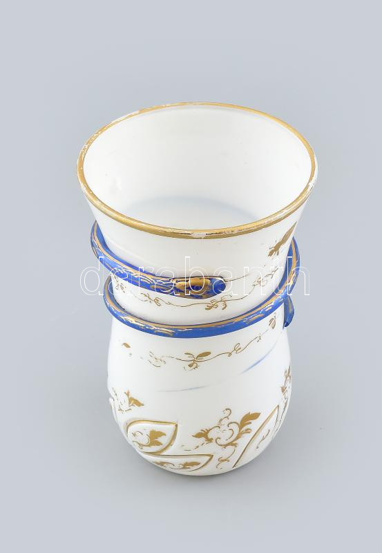 Leírás: Biedermeier antik üveg pohár, ouroborosz / uroborosz (Örökkévalóság) motívummal. Kopással, lepattanással. Jelzés nélkül, 1850-70 körül. m: 12 cm