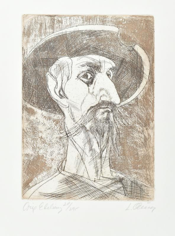 Leírás: Almásy László (1926-): Don Quijote. Rézkarc, papír, jelzett, számozott (28/295), hátoldalán autográf felirattal, 20×14,5 cm