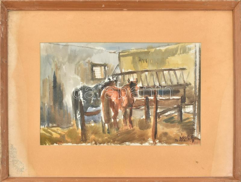 Élesdy István (1912-1987): Lovak az istállóban. Akvarell, papír, jelze... https://www.darabanth.com/hu/432-Gyorsarveres/432.0/Festmenyek-es-grafikak/Festmenyek-es-grafikak~500023/Elesdy-Istvan-1912-1987-Lovak-az-istalloban-Akvarell-papir-jelzett-Uvegezett-fakeretben~II2762916