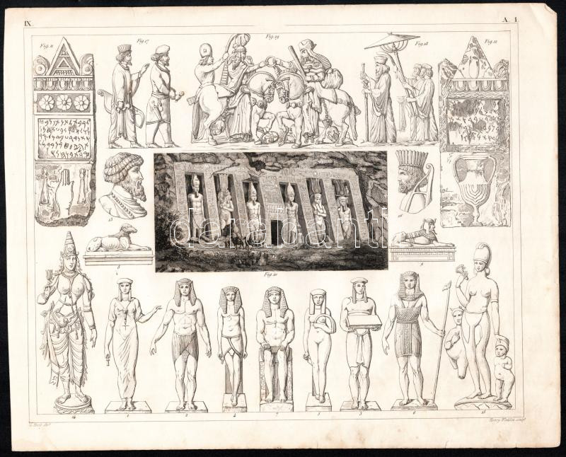 9 db XIX, sz. történelmi témájú metszet. Klf. technikák, papír. Mind jelzett a metszeten. Részben kissé foltos, lap széle helyenként kissé sérült. Lapméret: 29×24 cm körül.