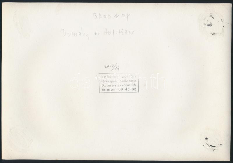 Leírás: Seidner Zoltán (1896-1960). Budapest, Broadway Mozi, ma Belvárosi Színház, hátoldalon feliratozott, pecséttel jelzett fotó, kis hibákkal, 17×23,5 cm