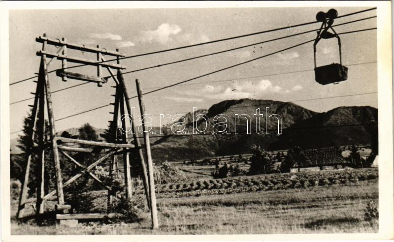 Leírás: Borsa (Máramarosi Kárpátok), kilátás a Horthy Miklós csúcs felé, sodronykötél-pálya / mountain, industrial ropeway