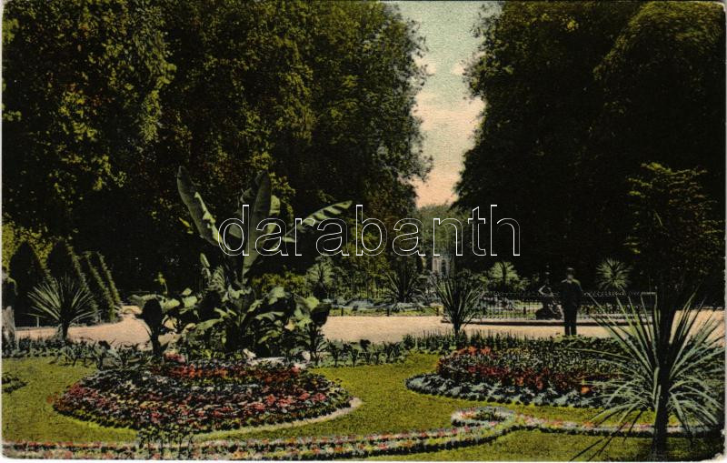 Leírás: 1908 Pozsony, Pressburg, Bratislava; Ligeti díszkert. Kaufmann's "Bediene dich allein" / Aupark / park (EK)