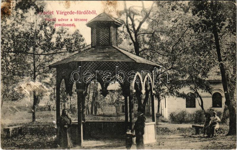 1908 Várgede, Várgedefürdő, Kúpele Hodejov, Hodejov; Fürdő udvar a tér... https://www.darabanth.com/hu/432-Gyorsarveres/432.0/Kepeslapok/Felvidek~2000007/1908-Vargede-Vargedefurdo-Kupele-Hodejov-Hodejov-Furdo-udvar-a-terzene-pavilonnal-Klein~II2783717