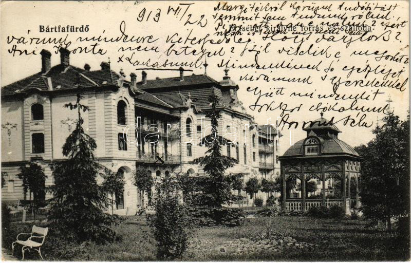 1913 Bártfa, Bártfafürdő, Bardejovské Kúpele, Bardiov, Bardejov; Erzsébet királyné forrás és szálloda. Neumann Viktor kiadása / spa, spring source, hotel (EK)