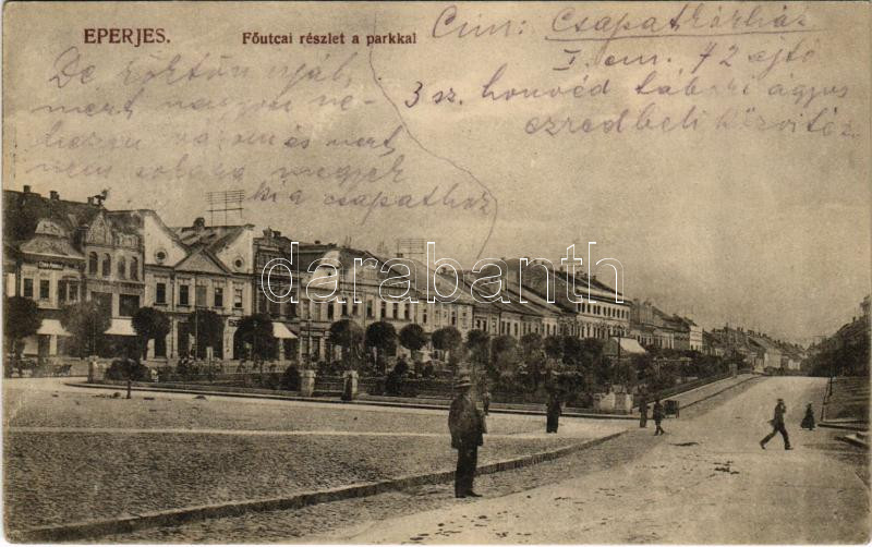 1915 Eperjes, Presov; Fő utca részlet a parkkal, üzletek. Divald Károl... https://www.darabanth.com/hu/432-Gyorsarveres/432.0/Kepeslapok/Felvidek~2000007/1915-Eperjes-Presov-Fo-utca-reszlet-a-parkkal-uzletek-Divald-Karoly-Fia-kiadasa-main-stre~II2784144