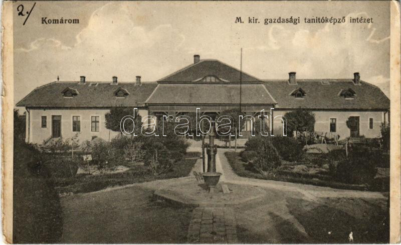 1915 Komárom, Komárno; M. kir. gazdasági tanítóképző intézet. Spitzer Sándor kiadása / teachers' training institute, school - képeslapfüzetből / from postcard booklet (kis szakadás / small tear)