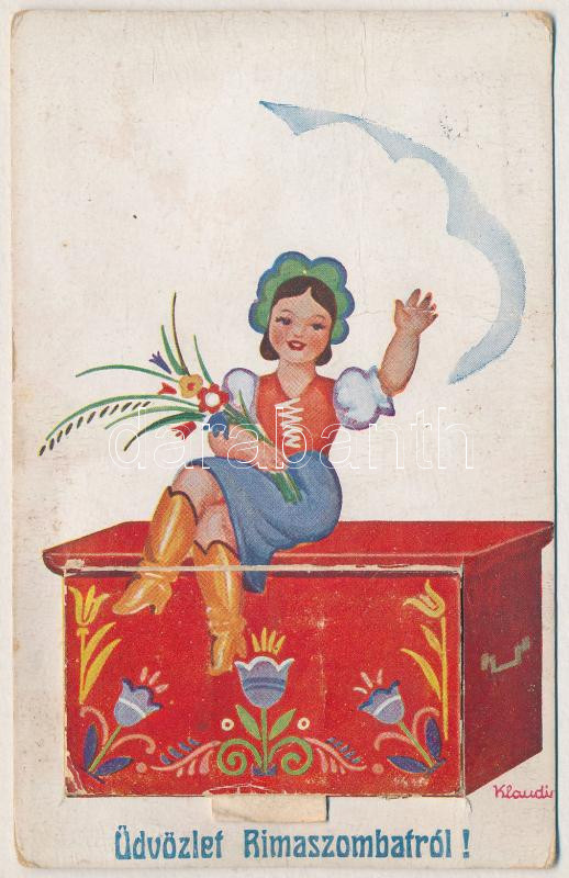 Leírás: 1943 Rimaszombat, Rimavská Sobota; népviseletes leporellolap 10 képpel / Hungarian folklore leporellocard with 10 pictures s: Klaudinyi (fa)