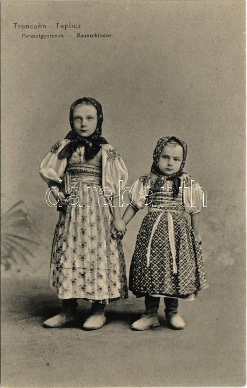 Trencsénteplic, Trencianske Teplice; parasztgyerekek, népviselet, folk... https://www.darabanth.com/hu/432-Gyorsarveres/432.0/Kepeslapok/Felvidek~2000007/Trencsenteplic-Trencianske-Teplice-parasztgyerekek-nepviselet-folklor-Wertheim-Zsigmond-kiad~II2786386