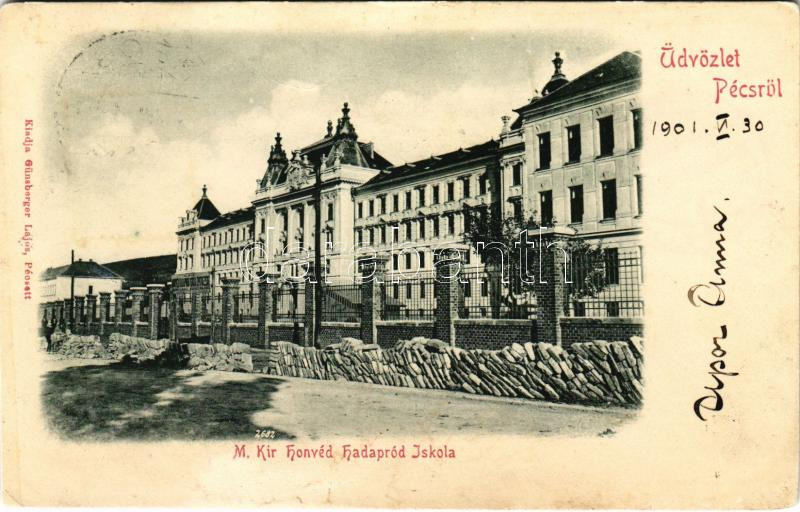 1901 Pécs, M. kir. honvéd hadapródiskola. Günsberger Lajos kiadása (r) https://www.darabanth.com/hu/432-Gyorsarveres/432.0/Kepeslapok/Magyarorszag~2000005/1901-Pecs-M-kir-honved-hadaprodiskola-Gunsberger-Lajos-kiadasa-r~II2779776