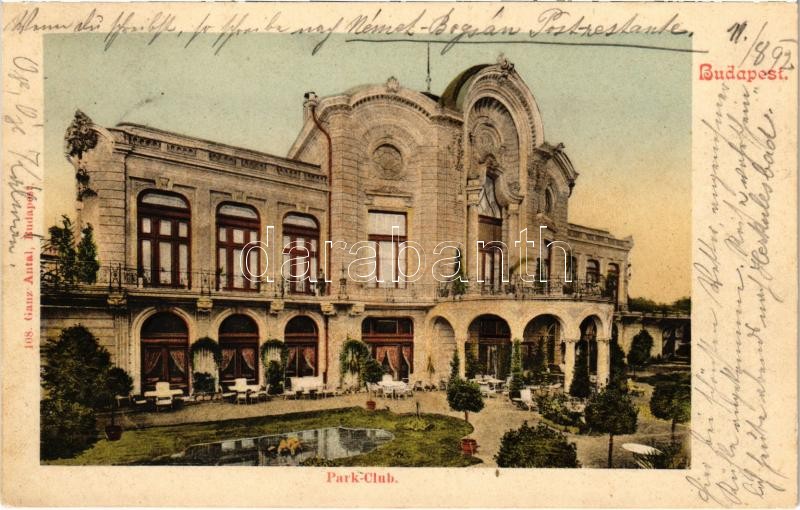 Leírás: 1902 Budapest XIV. Városliget, Park Club. Ganz Antal 108.