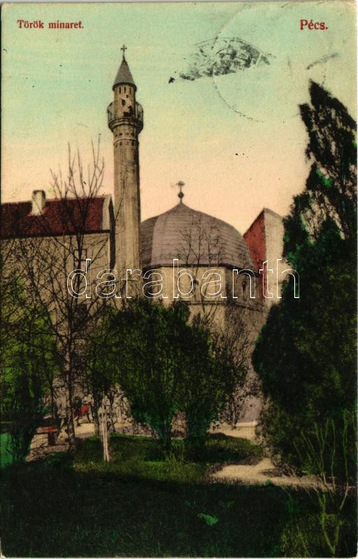 1907 Pécs, Török minaret. Divald Károly 1647-1907. (EK) https://www.darabanth.com/hu/432-Gyorsarveres/432.0/Kepeslapok/Magyarorszag~2000005/1907-Pecs-Torok-minaret-Divald-Karoly-1647-1907-EK~II2779801