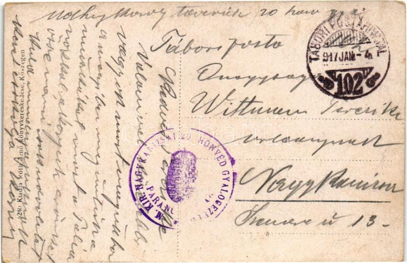 Leírás: 1917 Kőszeg, Gyöngyös részlet és a kőfejtő. Róth Jenő kiadása + "M. kir. nagykanizsai 20. honvéd gyalogezred parancsnokság" (EK)