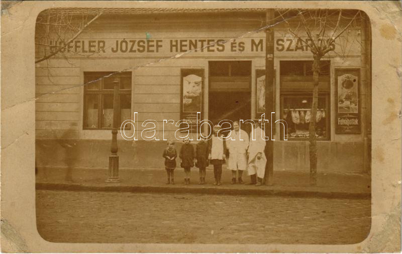 1928 Budapest XIII. Angyalföld, Höffler József hentes és mészáros üzle... https://www.darabanth.com/hu/432-Gyorsarveres/432.0/Kepeslapok/Magyarorszag~2000005/1928-Budapest-XIII-Angyalfold-Hoffler-Jozsef-hentes-es-meszaros-uzlete-okorhus-es-felv~II2785367