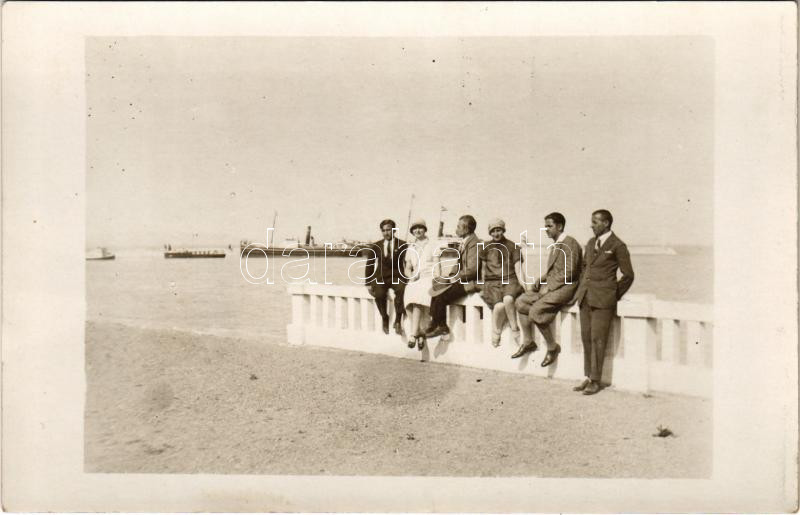 Leírás: 1928 Tihany, Balaton part, kikötő, kirándulók. photo