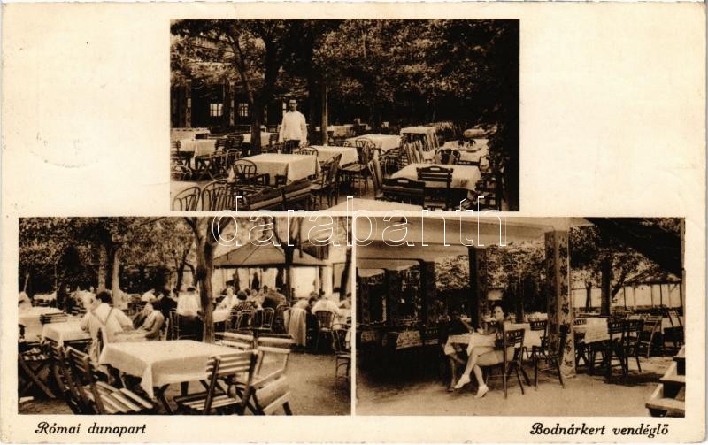 1935 Budapest III. Római dunapart, Bodnárkert vendéglő kertje https://www.darabanth.com/hu/432-Gyorsarveres/432.0/Kepeslapok/Magyarorszag~2000005/1935-Budapest-III-Romai-dunapart-Bodnarkert-vendeglo-kertje~II2692036