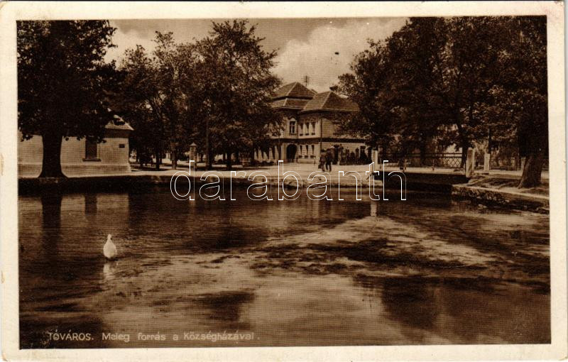1939 Tata-Tóváros, Meleg forrás a községházával (EK) https://www.darabanth.com/hu/432-Gyorsarveres/432.0/Kepeslapok/Magyarorszag~2000005/1939-Tata-Tovaros-Meleg-forras-a-kozseghazaval-EK~II2784556