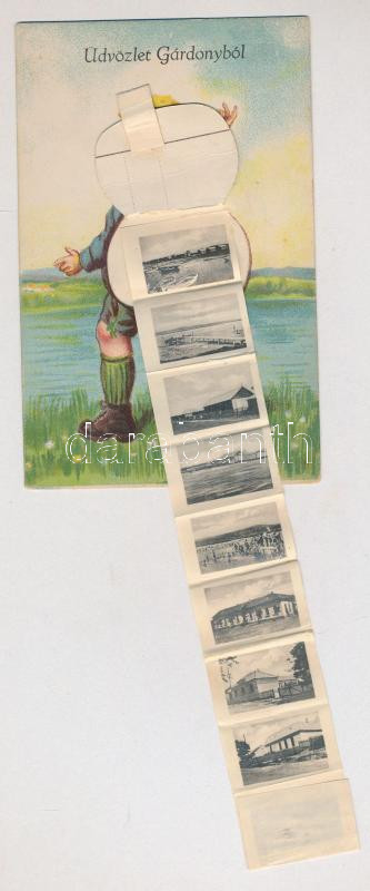 Leírás: 1940 Gárdony, Túrázó kisfiú leporello 10 mini képpel