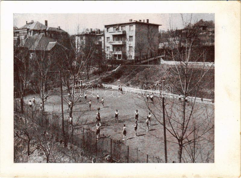 Leírás: Budapest II. Budai Rákóczi Kollégium játszótere. Oszlop utca 35. (ma Keleti Károly utca) (fl)