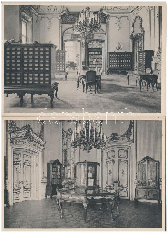 Leírás: Budapest VIII. Fővárosi Könyvtár, belső. Erdélyi cs. és kir. udv. fényképész felvételei - 10 db régi képeslap