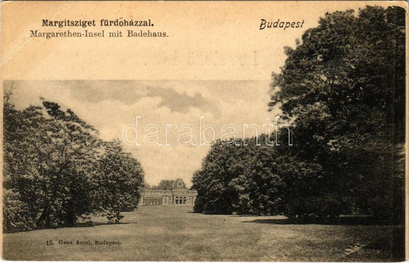 Leírás: Budapest XIII. Margitsziget, fürdőház. Ganz Antal 15. (EB)