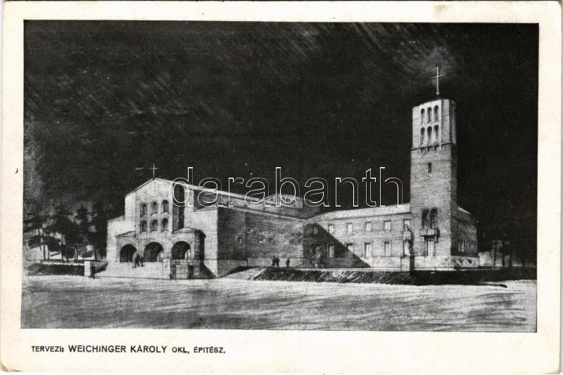 Budapest XXI. Csepel-Királyerdő, Lazarista Missiós templom és rendház terve, altemplomában 400 kriptahely van. Tervezi Weichinger Károly okleveles építész (EK)