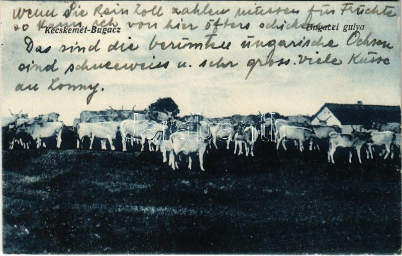 Bugac (Kecskemét), gulya, magyar folklór. Burián Lajos kiadása (EK) https://www.darabanth.com/hu/432-Gyorsarveres/432.0/Kepeslapok/Magyarorszag~2000005/Bugac-Kecskemet-gulya-magyar-folklor-Burian-Lajos-kiadasa-EK~II2781195