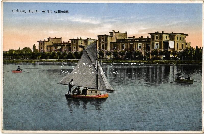 Siófok, Hullám és Sió szállodák, vitorlás, csónakázók (EK) https://www.darabanth.com/hu/432-Gyorsarveres/432.0/Kepeslapok/Magyarorszag~2000005/Siofok-Hullam-es-Sio-szallodak-vitorlas-csonakazok-EK~II1972123