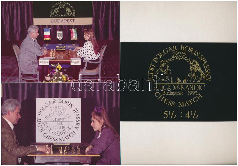 Leírás: 3 db MODERN sakk motívum képeslap Polgár Judit és Boris Spassky mérkőzéséről 1933-ban / 3 modern chess motive postcards